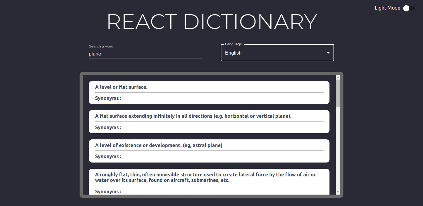 Dictionary App created using React, MaterialUI, DictionaryAPI